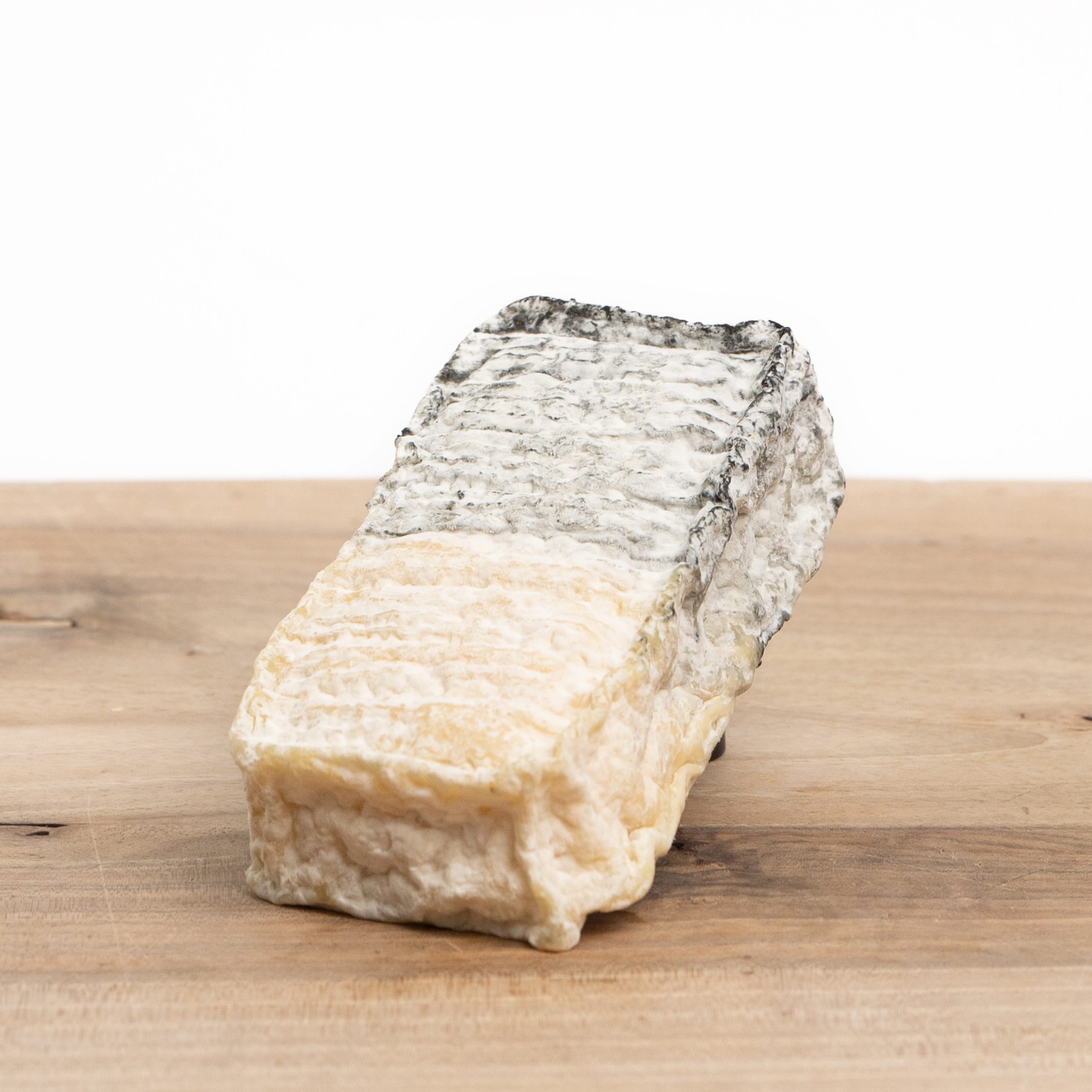 De helft van de kaas wordt bestrooid met plantaardige houtskool. Dat geeft de Briquette zijn kenmerkende tweekleurige uiterlijk. De korst is ivoorkleurig met een lichte witte dons, terwijl de pâte helderwit en glad van structuur is.