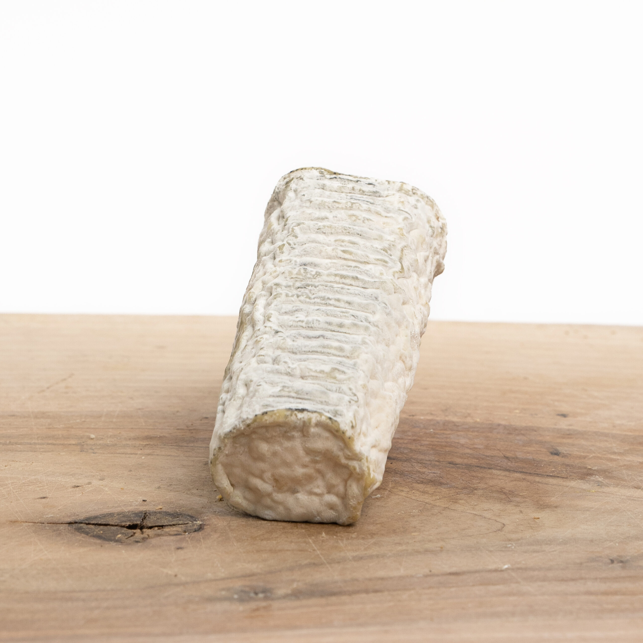 De kaas wordt gemaakt van rauwe geitenmelk en heeft een romige, soepele structuur. De korst is lichtgrijs door een dun laagje as, wat zorgt voor een mooi contrast met de helderwitte pâte. Die as helpt de kaas rustig te rijpen en draagt bij aan een subtiele aardse nuance.