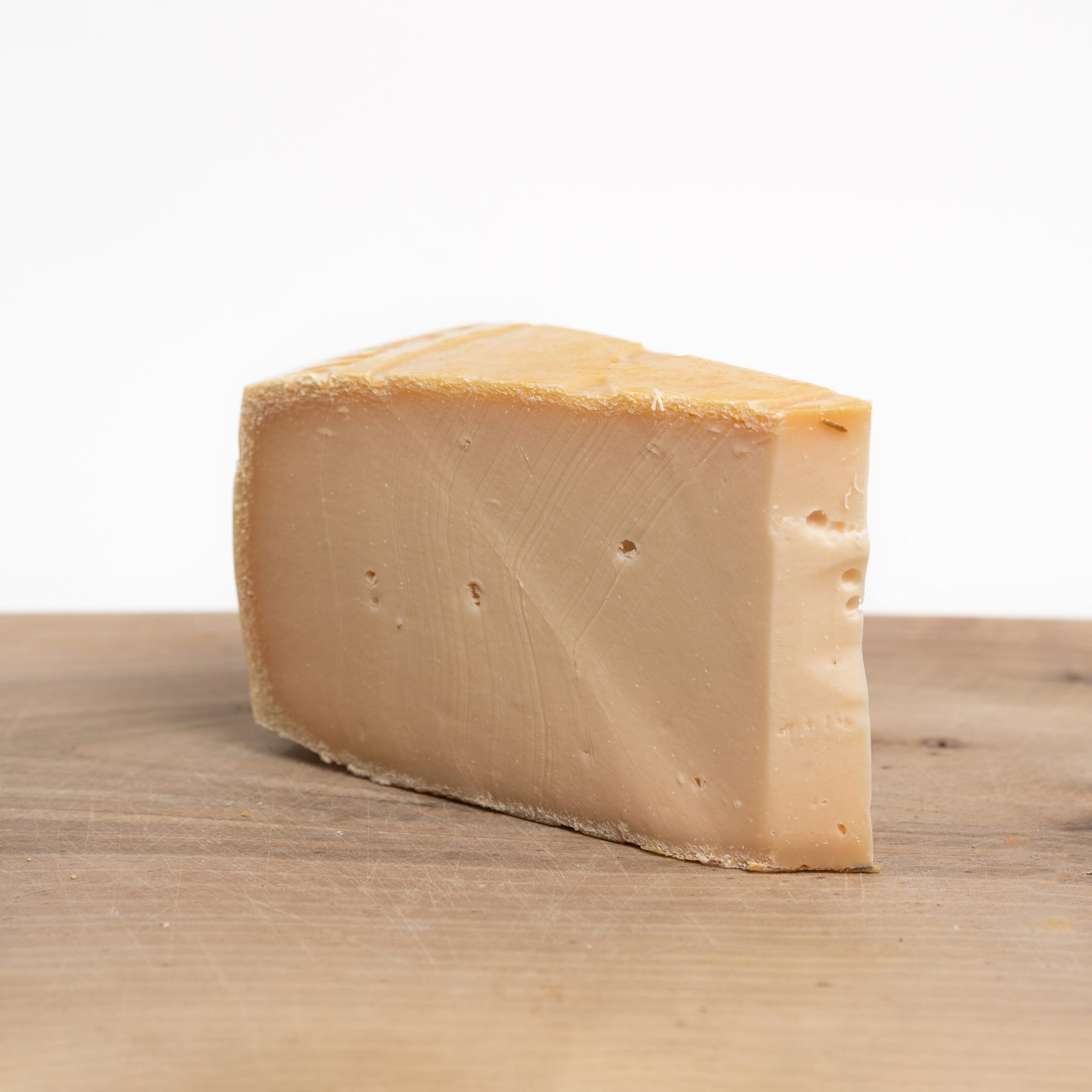 Ook het uiterlijk vertelt het verhaal: geen etiket of banderol, maar een logo dat rechtstreeks in de kaas is gedrukt.