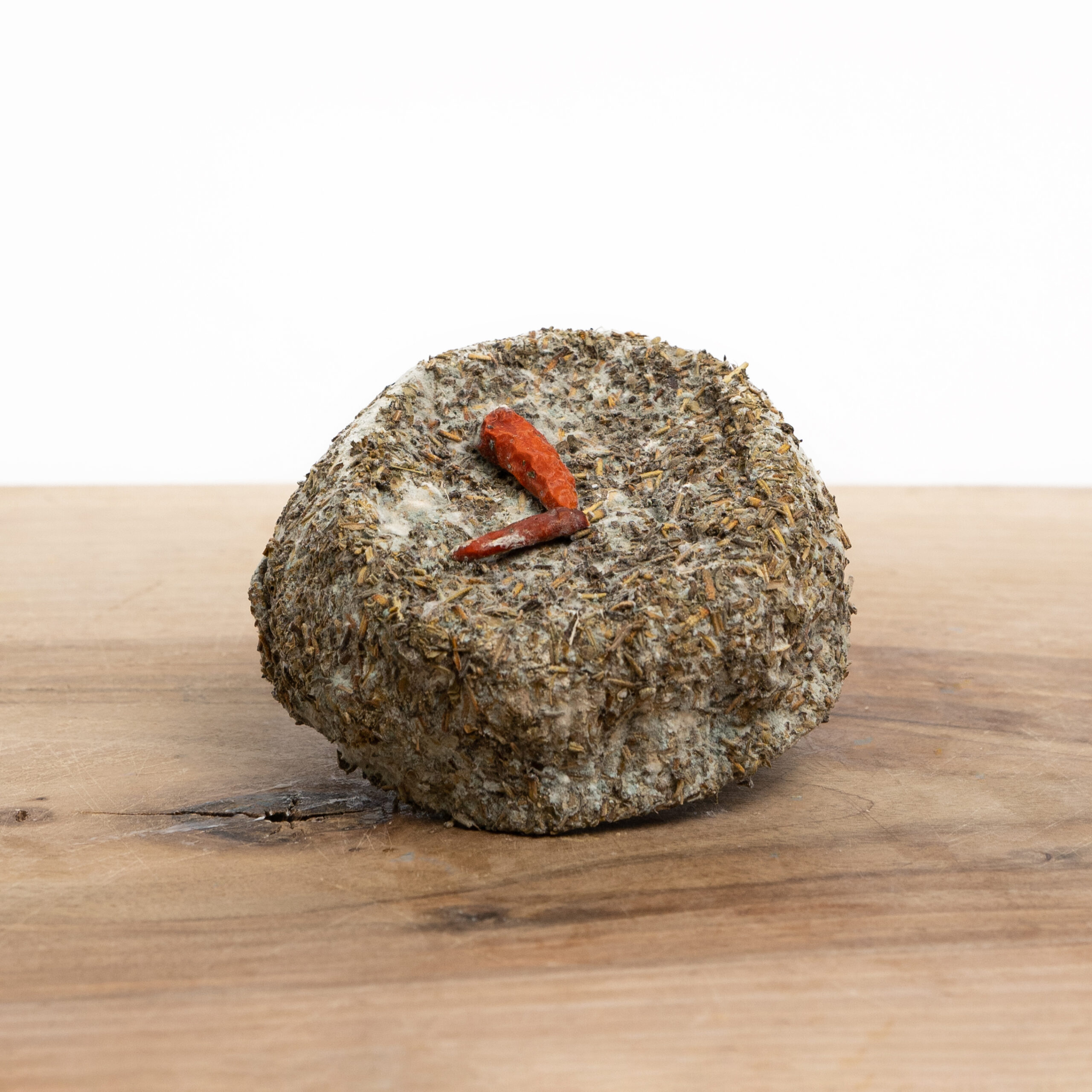 De kruidenkorst is eetbaar en zorgt voor een kruidige, licht pittige bite. Dat maakt deze kaas niet alleen mooi om te zien, maar ook spannend om te proeven.