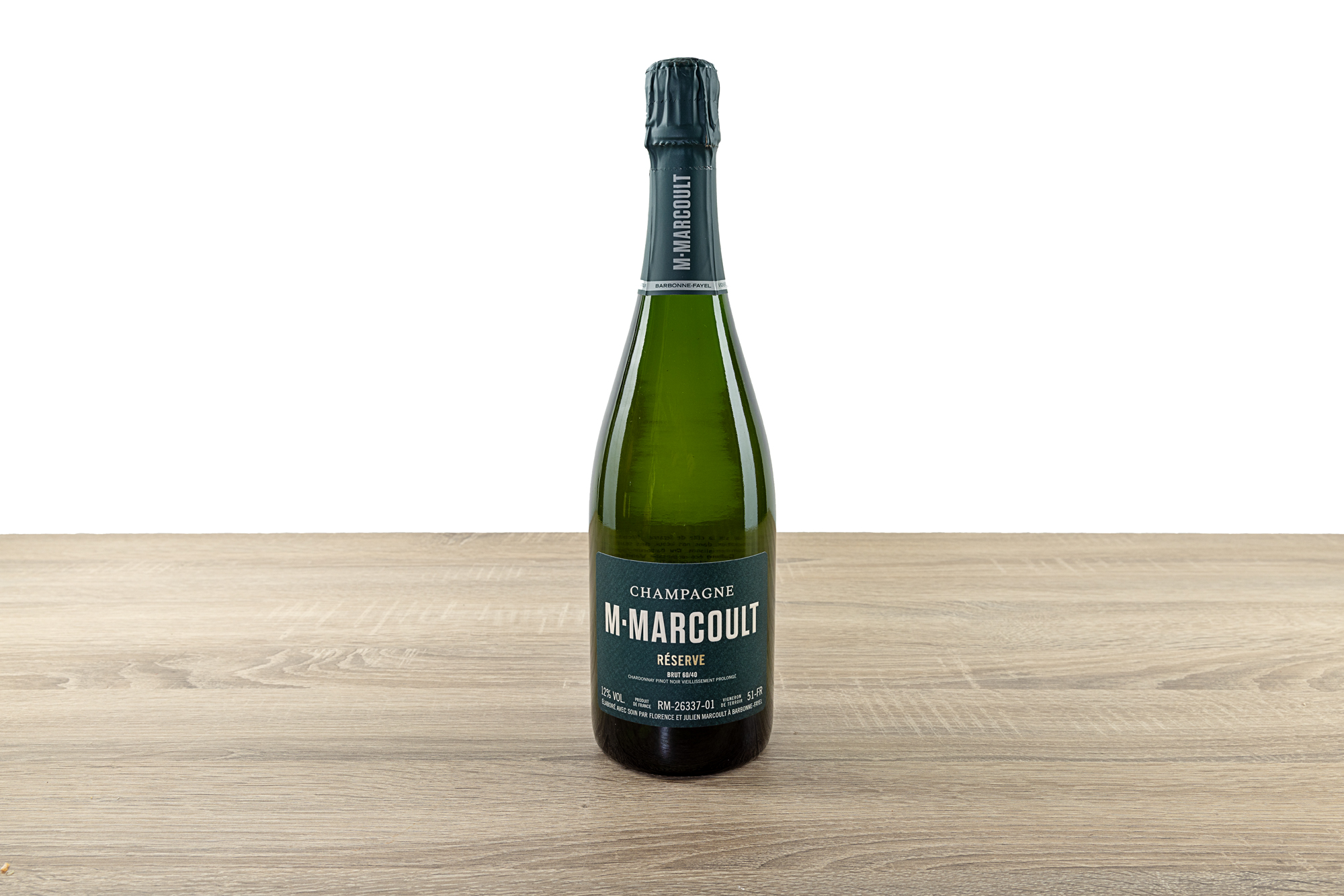 Een dijk van een Champagne die we zelf importeren vanuit Frankrijk. Deze Réserve is intens, mooi goudkleurig met een behoorlijke rijkheid. De geuren zijn wat complex vanwege de blend. Het is 60% Chardonnay en 40% Pinot Noir en opent met gedroogde abrikozen, noten, honing en koffie. Maar die power heeft gelukkig ook wat frisheid, dankzij een citroenachtige toets die veel houvast geeft.