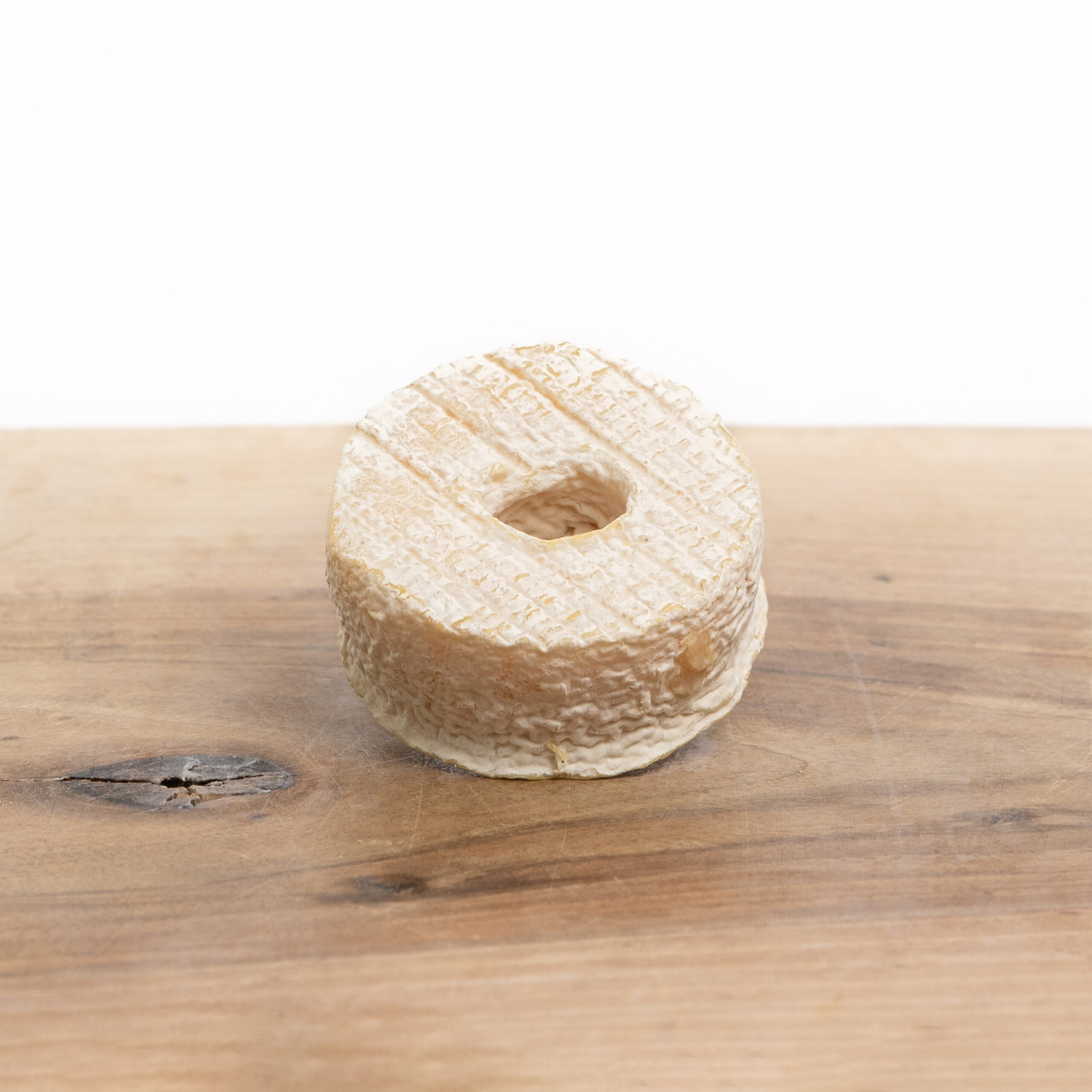 Rouelle Blanche is een rauwmelkse geitenkaas uit Zuid-Frankrijk, herkenbaar aan zijn ronde vorm met een opening in het midden. Doordat hij geen binnenkant heeft, rijpt hij gelijkmatig en blijft de structuur mooi in balans.