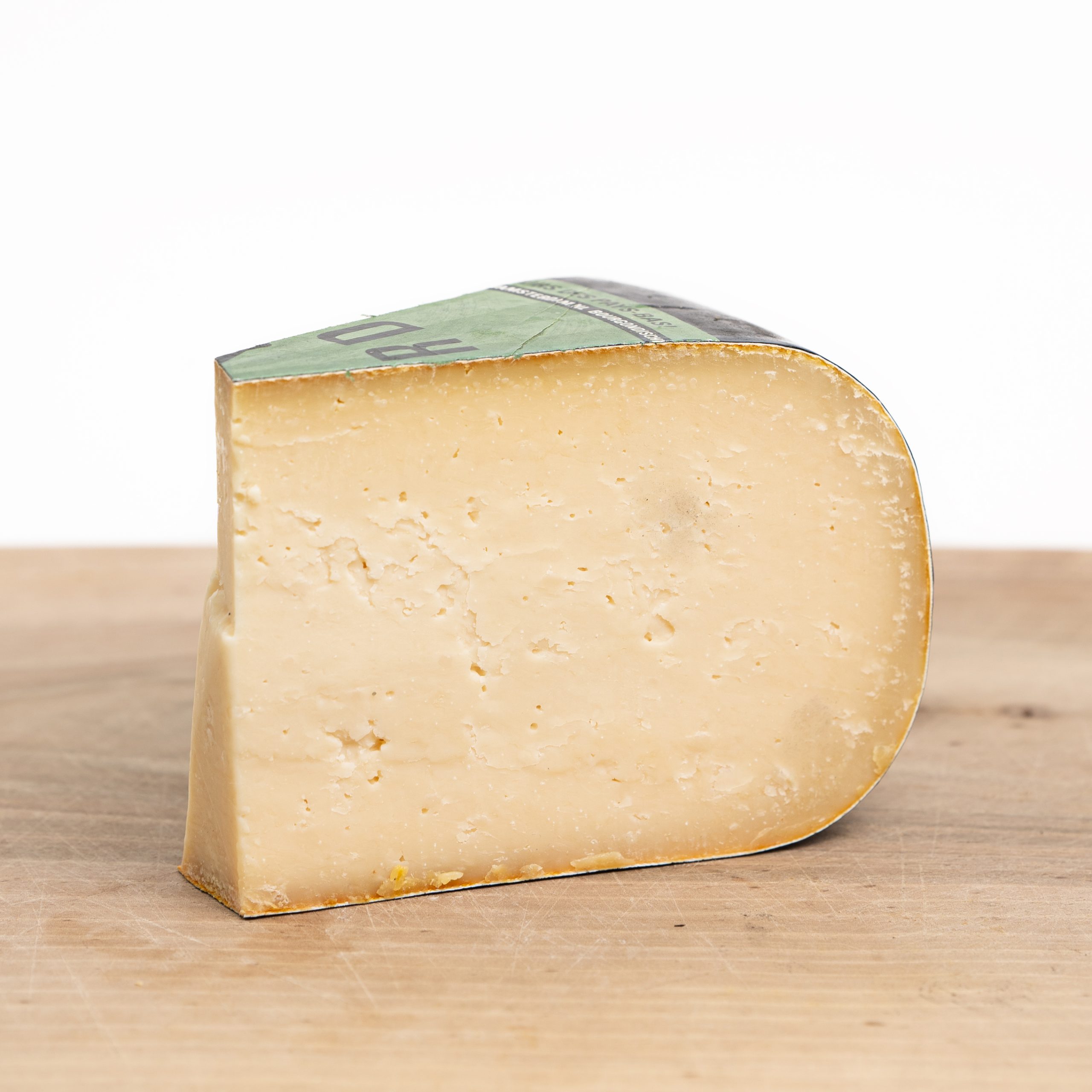 De korst is droog en stevig. Vanbinnen is de kaas ivoorkleurig en compact, zonder brokkelig te worden. Hij laat zich makkelijk snijden en blijft mooi liggen op de plank.